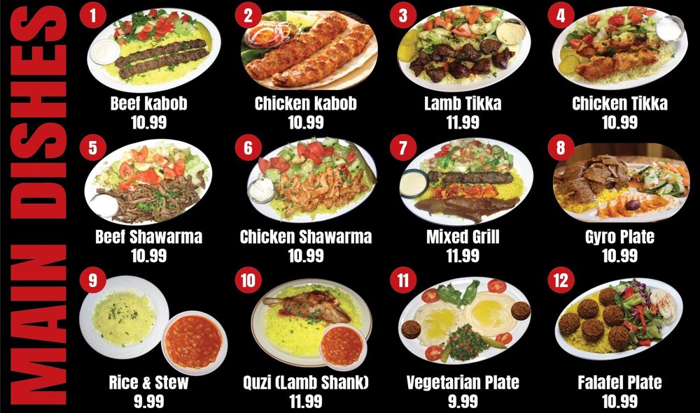 A combination of our three most popular meats, ribeye steak kabob, marinated chicken kabob, and delicious kofta kabob. Served on a bed of rice, with a side of hummus and baba ghanoush. Served with a side of salad or soup.